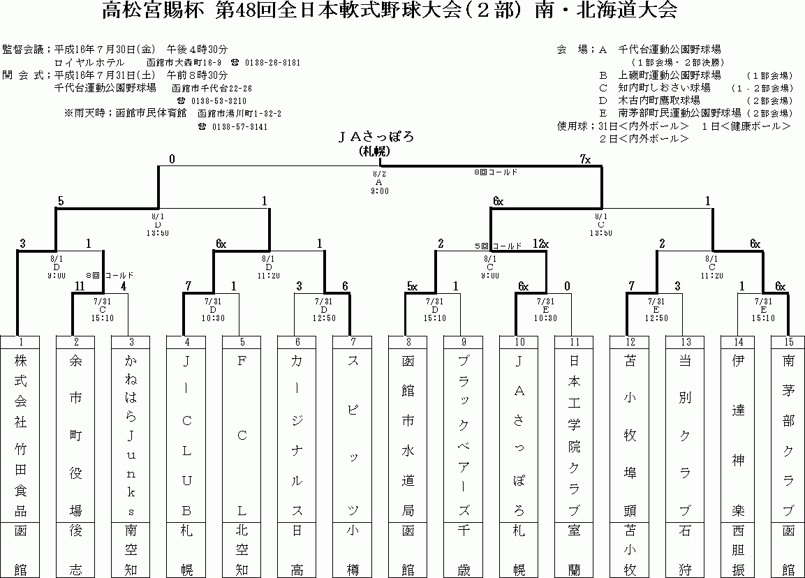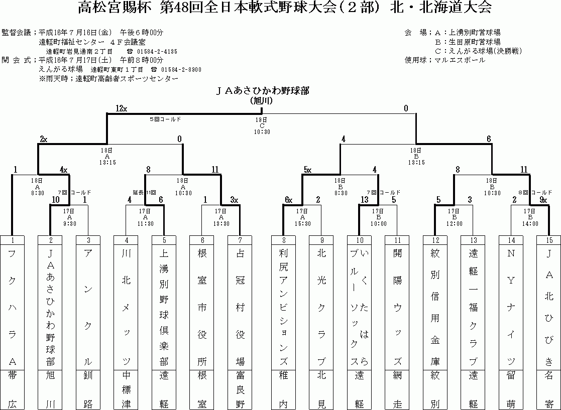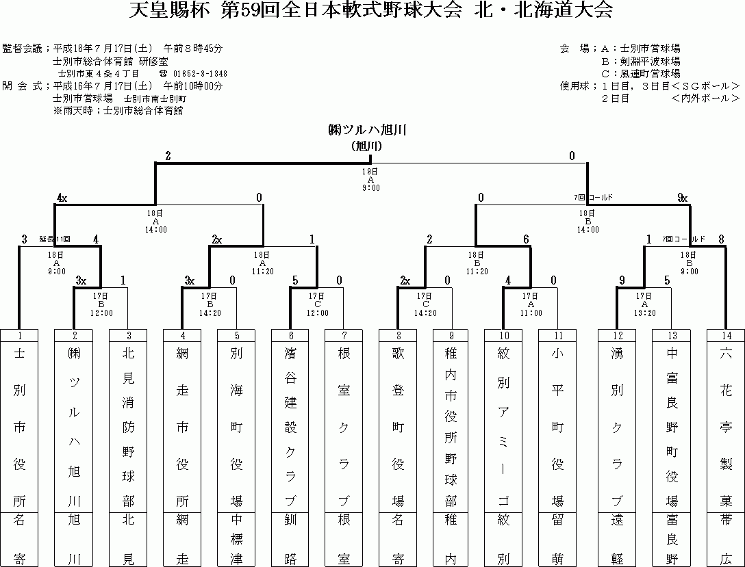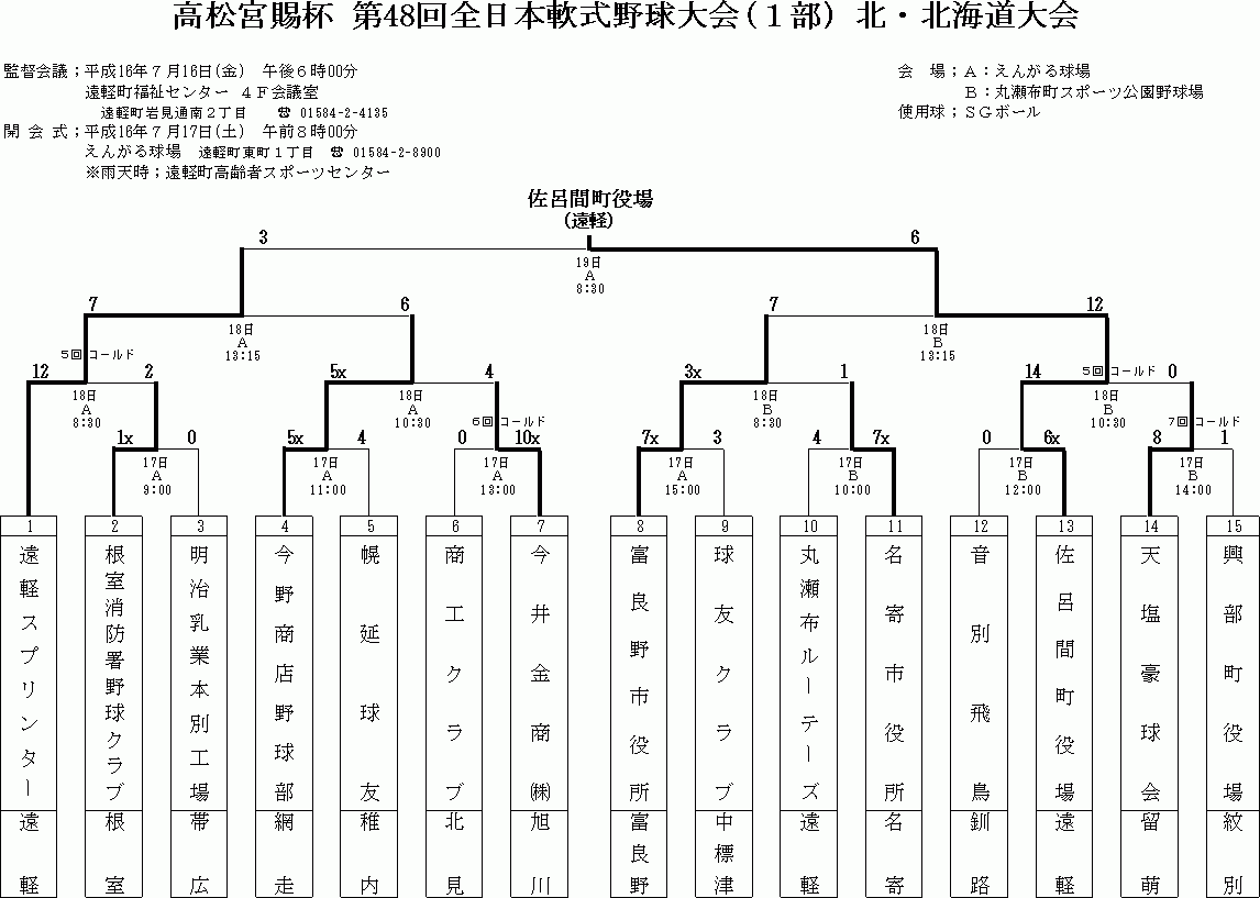 全道少年 高松宮賜杯 南北海道 1部 高松宮賜杯 北北海道 2部 国民 一般Bの結果詳細