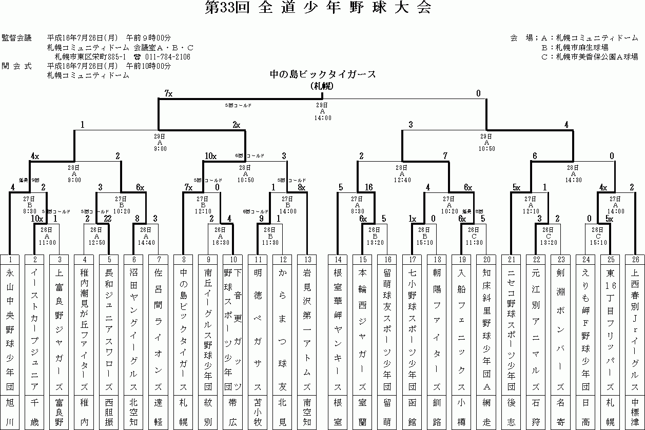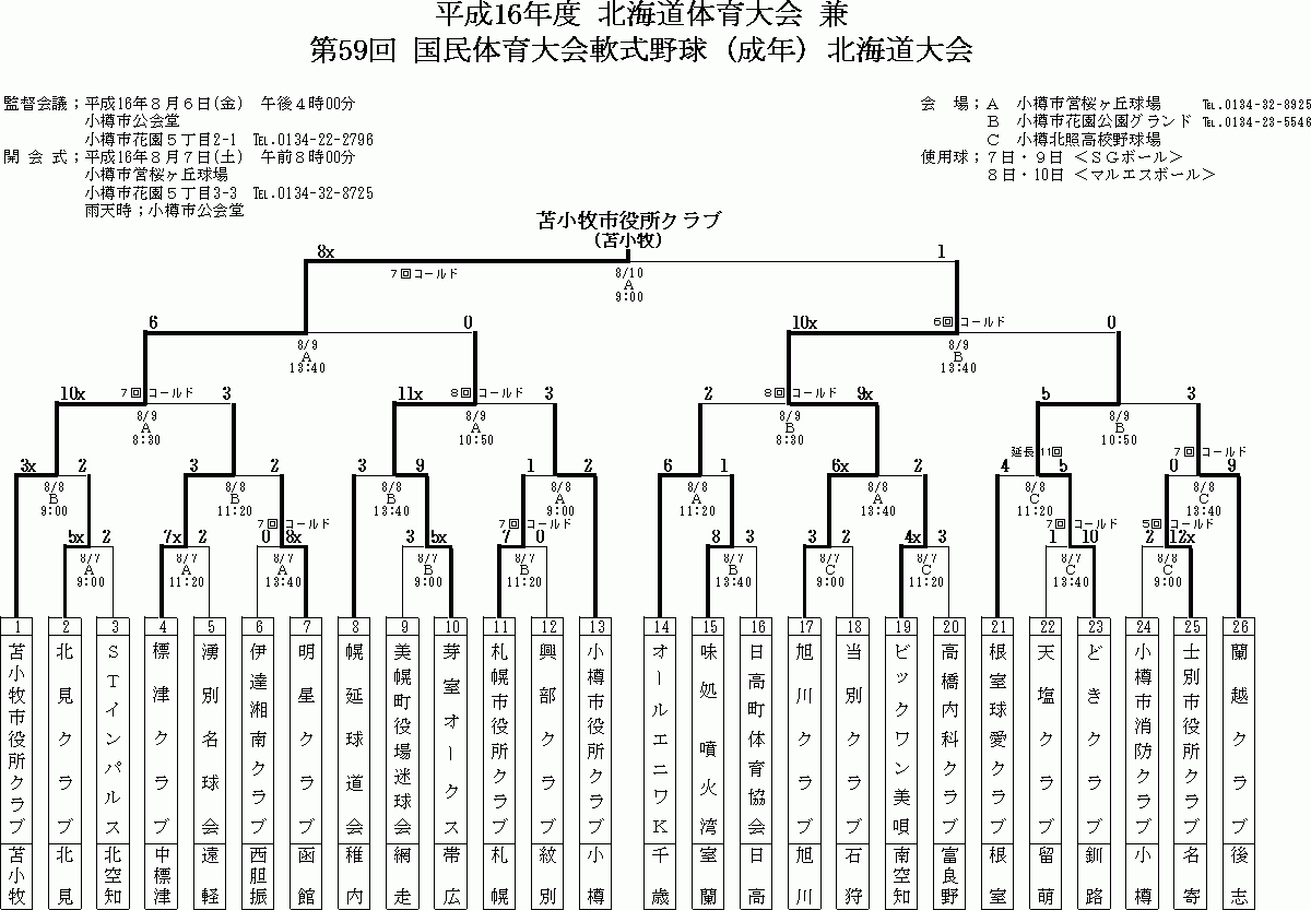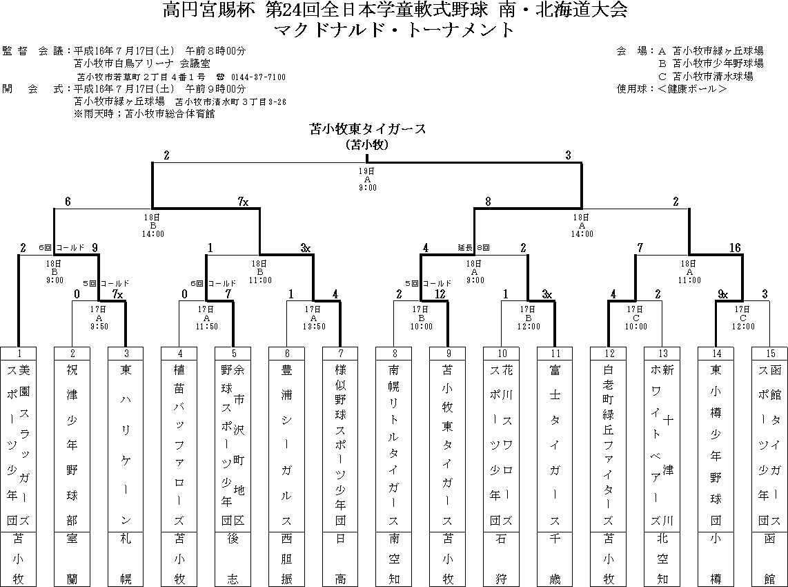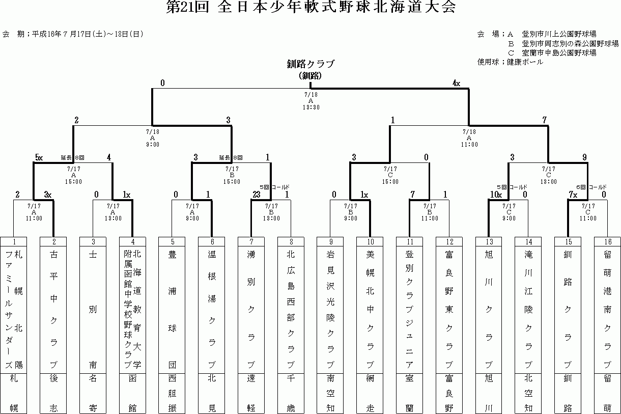 全道少年 高松宮賜杯 南北海道 1部 高松宮賜杯 北北海道 2部 国民 一般Bの結果詳細