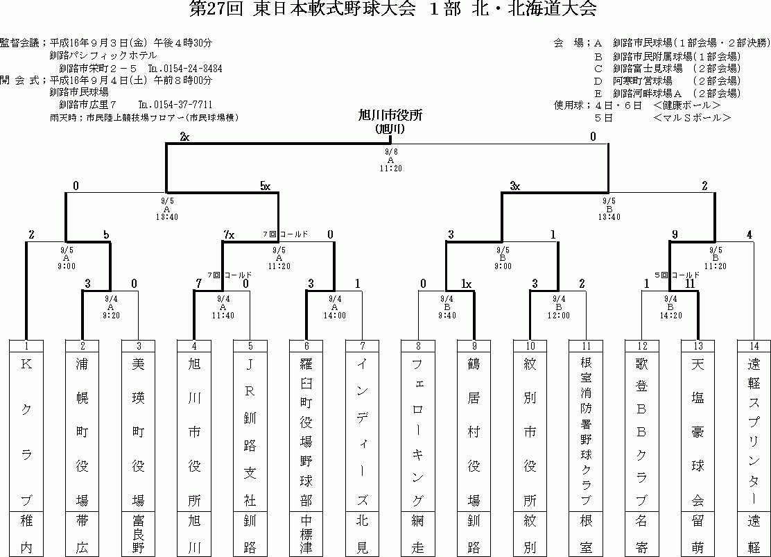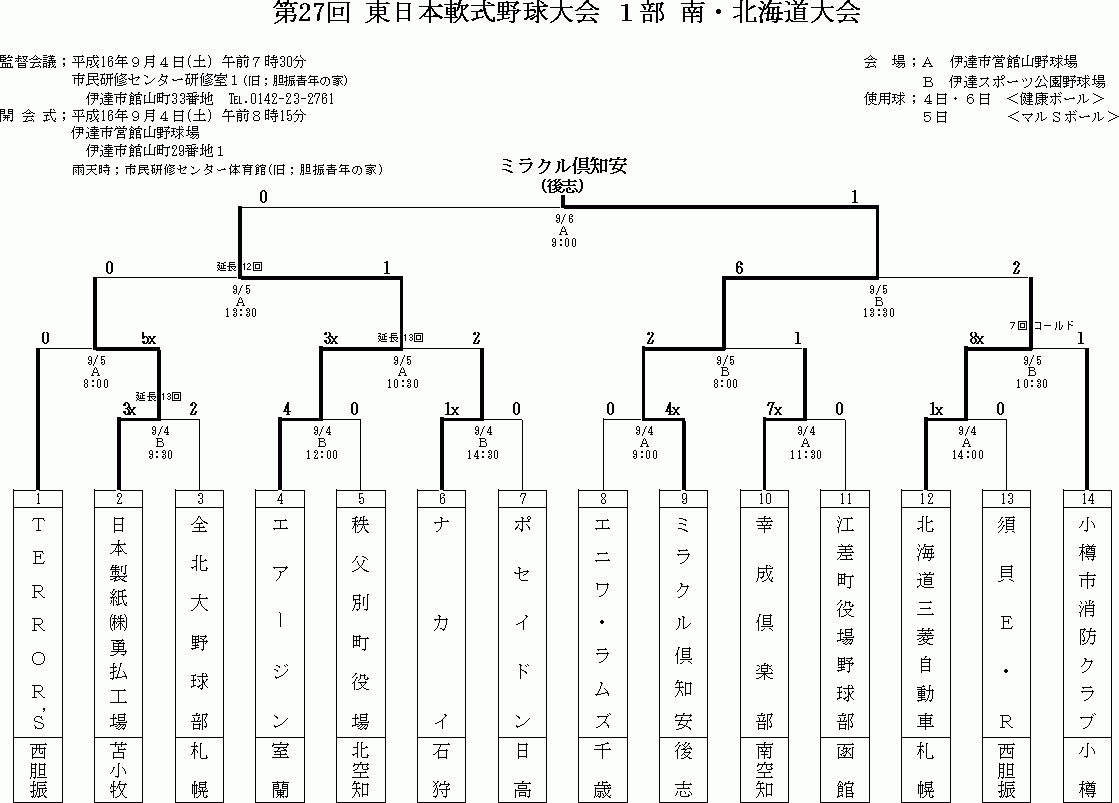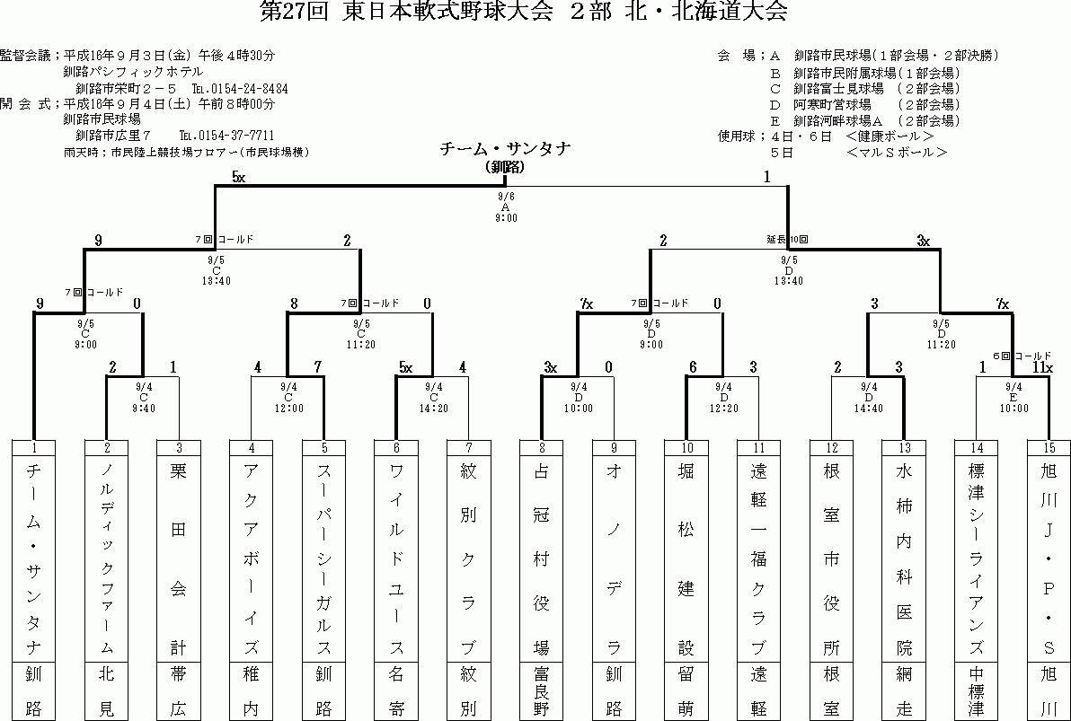 9月4日〜13日の試合詳細です (東日本1部・2部、北・南北海道、北海道知事杯)