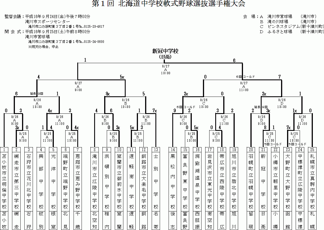 9月25日〜27日の試合詳細です (第1回 中学軟式)